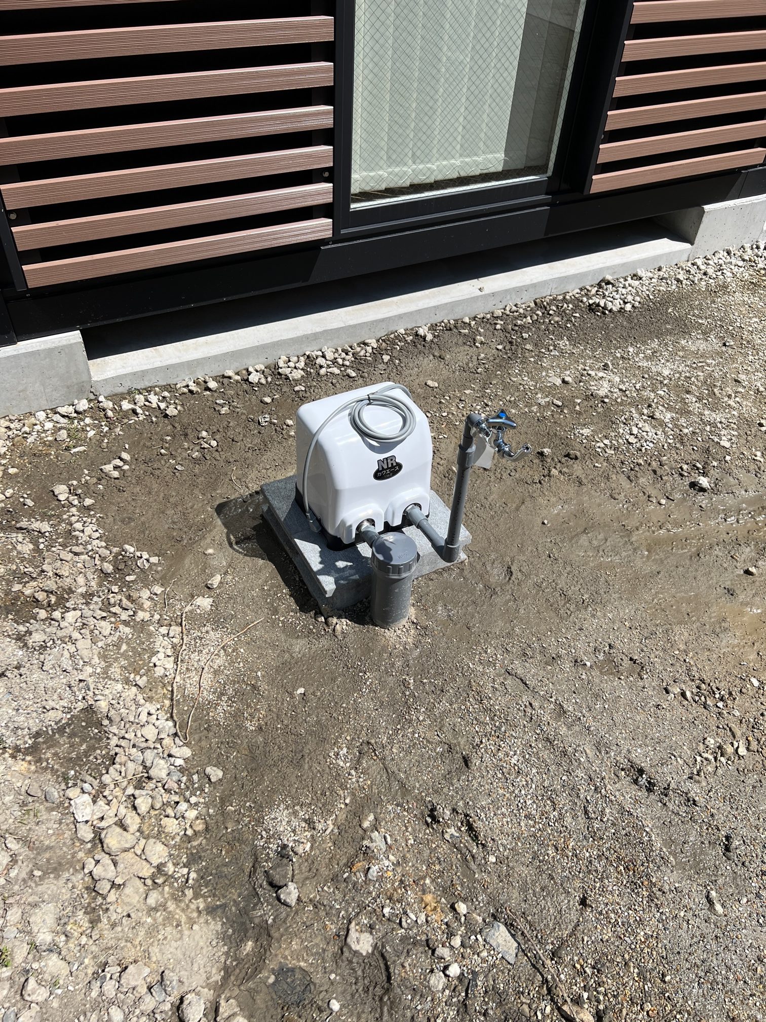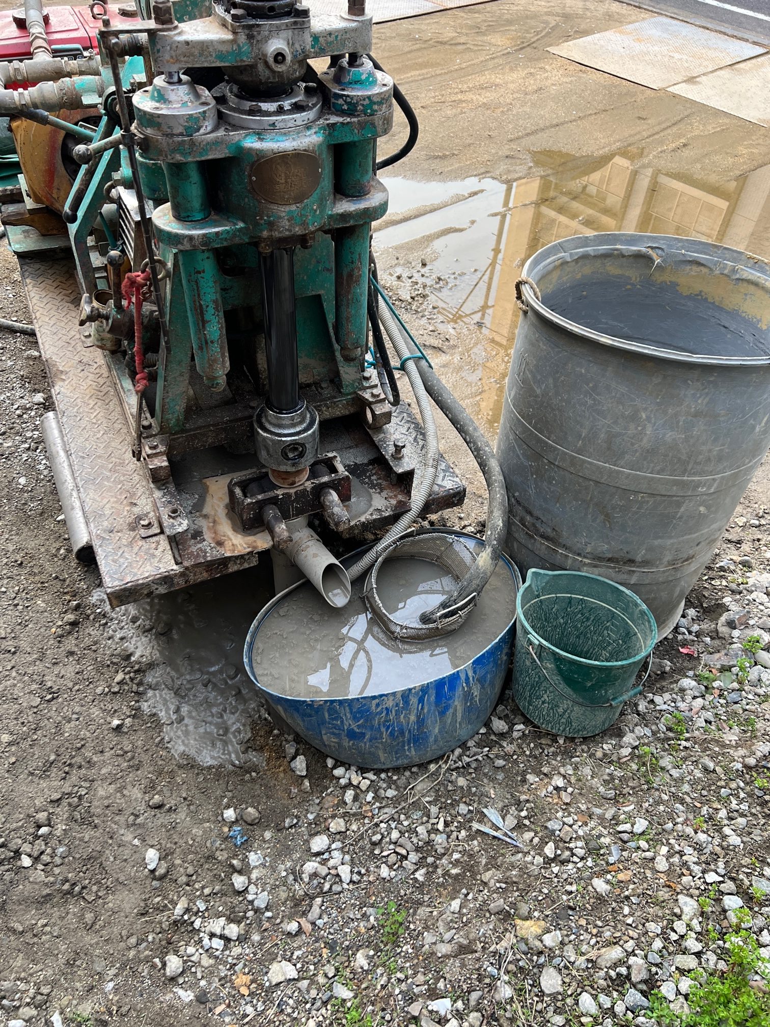今回はボーリングマシーンにて削孔し、配管、電動ポンプを設置し完了。